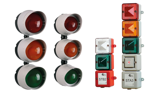 Also upgraded with the latest 18 white LED array light source are the STA and STB families of customizable stack signals, UL approved for general signaling applications such as status indication, security and process control. The STA stacks have a SONF1 compact 100dB(A) alarm horn sounder to give an integrated audible/visual unit; the STB family are beacon-only arrays. Both versions are available with two, three or four units in a stack array which are terminated in a common junction box via a factory-fitted internal wiring loom to give a single external interconnect point. The UV stable PC lenses are available in Amber, Blue, Clear, Green, Magenta, Red and Yellow.